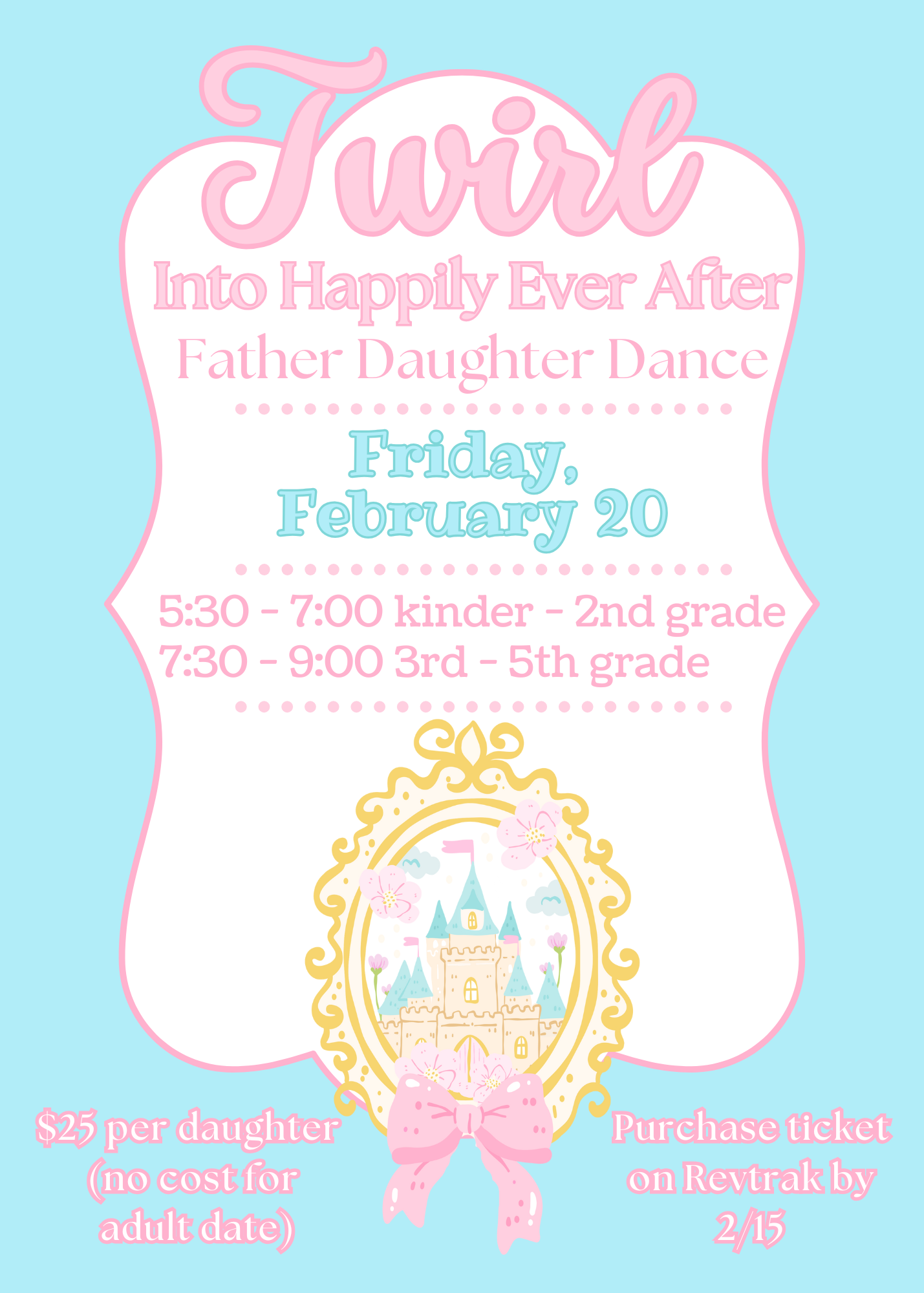 We are excited to invite Greenbrier Elementary daughters and their adult date to our annual Father-Daughter Dance! This special evening will be split into two magical sessions by grade level: